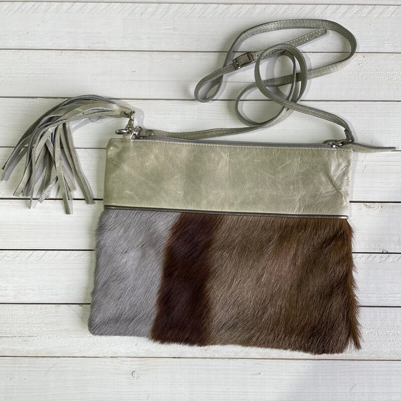 Tas Gemma 29x23cm springbok grijs springbok leather top bruin