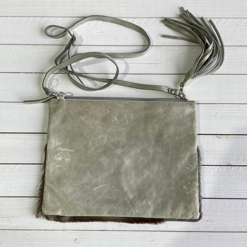 Tas Gemma 29x23cm springbok grijs leather top