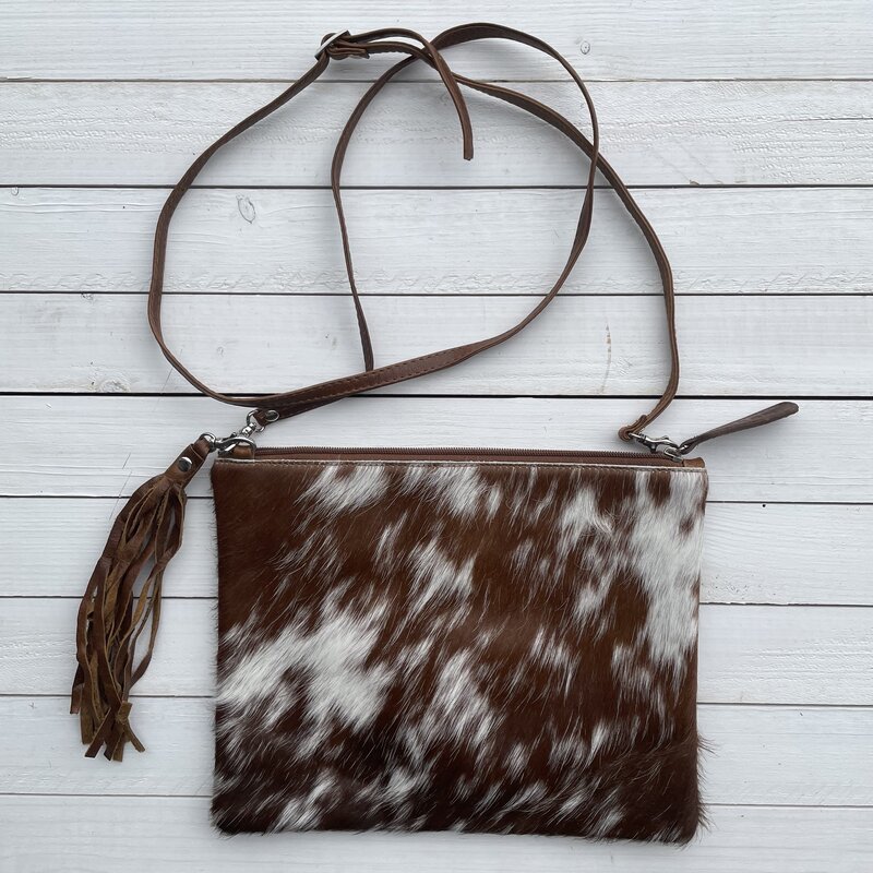 Tas Gemma koeienhuid bruin wit 29x23cm